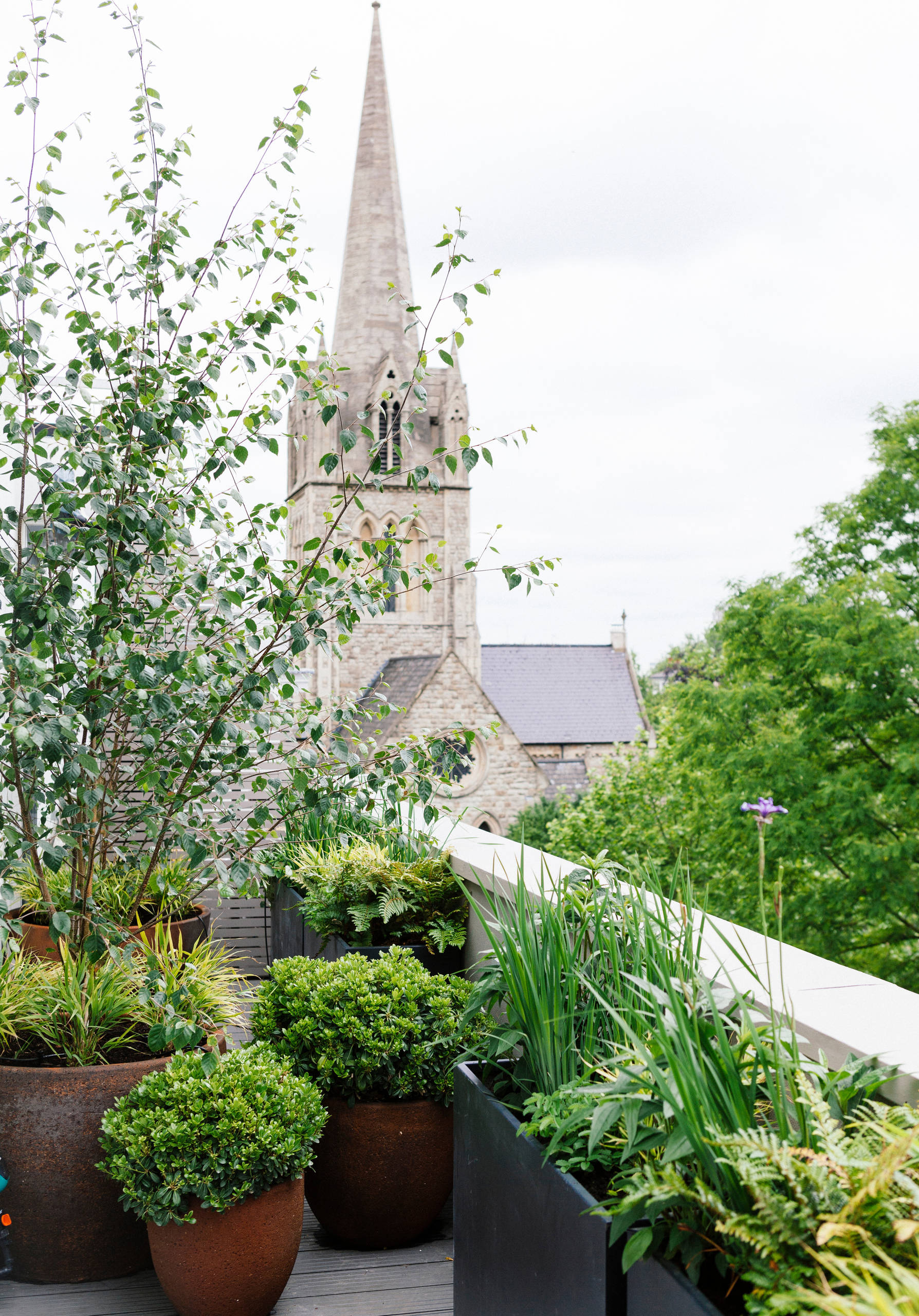 “Last year I designed a balcony using two large containers on each side and planted them with Betula trees,” Roberto says. “The white bark with the deep blue of the container was a good combination, and the 2.3m-high Betulas were enough to make the balcony on their own.”