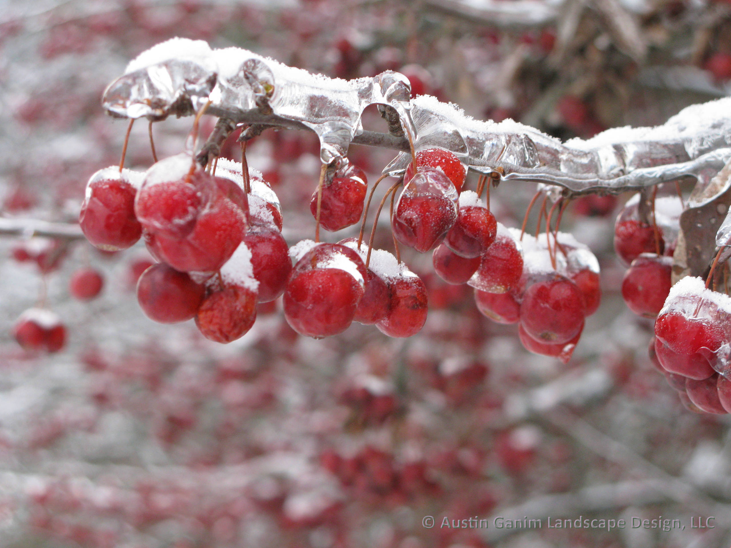 “Malus ‘Adirondack’ and Malus ‘Comtesse de Paris’ can still hold fruit into the New Year and provide a late source of food for birds.”