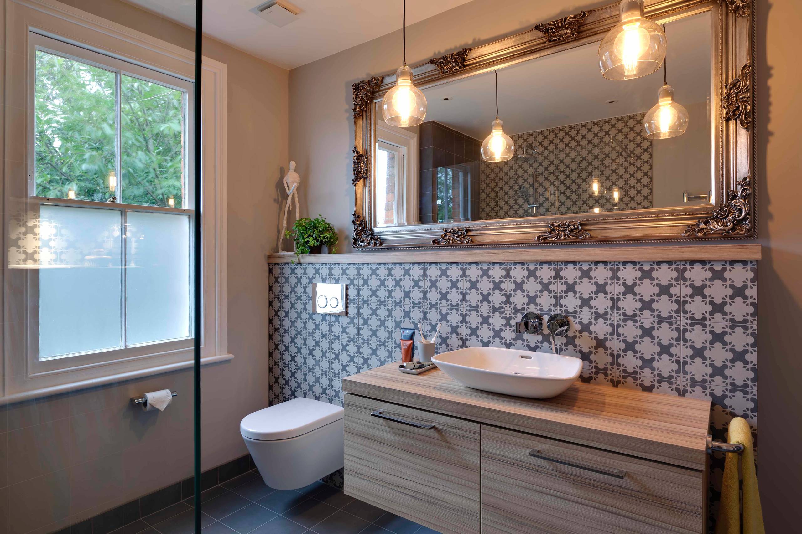 For example, this bathroom mixes contemporary sanitaryware with more traditional panelling and patterned tiles, making it a great example of an eclectic-style bathroom.