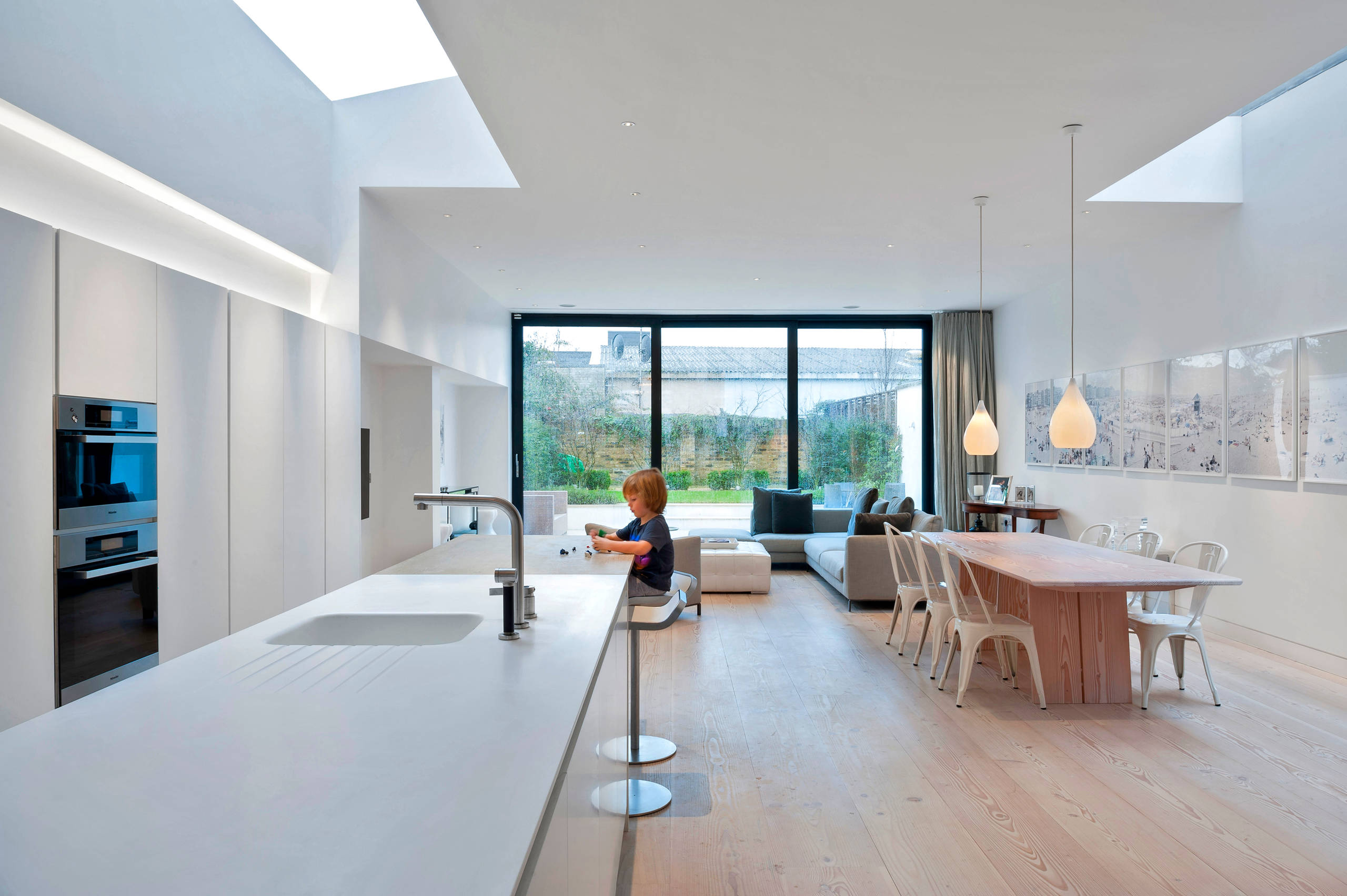 When planning your lighting scheme for an open-plan living space, you should do so with the location of your furniture in mind, rather than simply focusing on the ceiling. By doing this, you’ll be able to light the different zones more effectively.