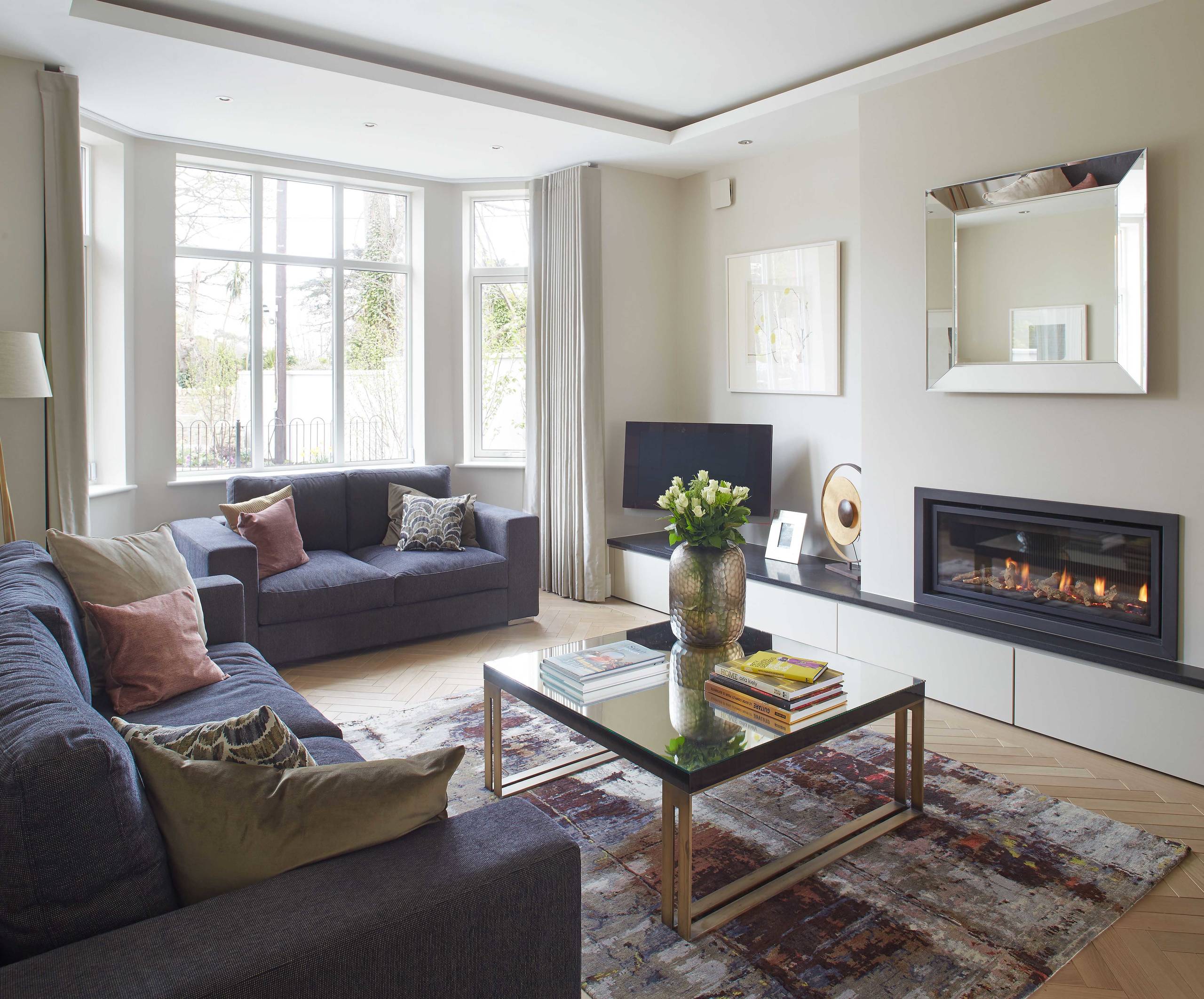 If you have a separate living room, it’s nice to try a different kind of lighting treatment in that space. This will give it a completely different atmosphere to the rest of the house.