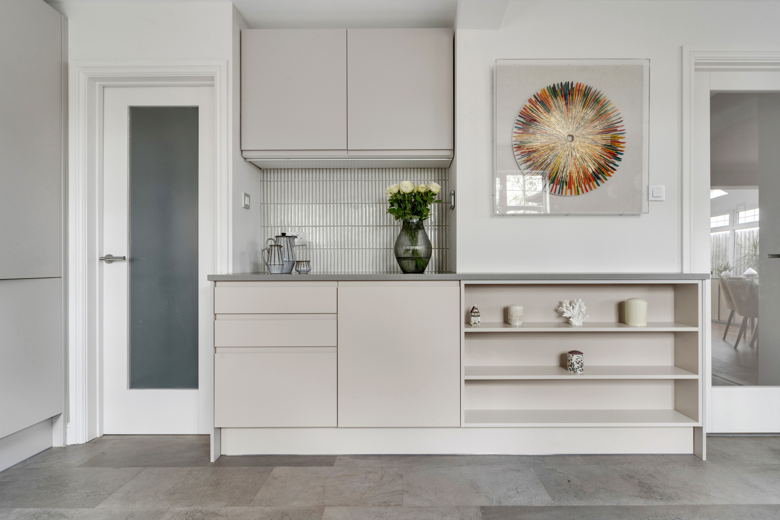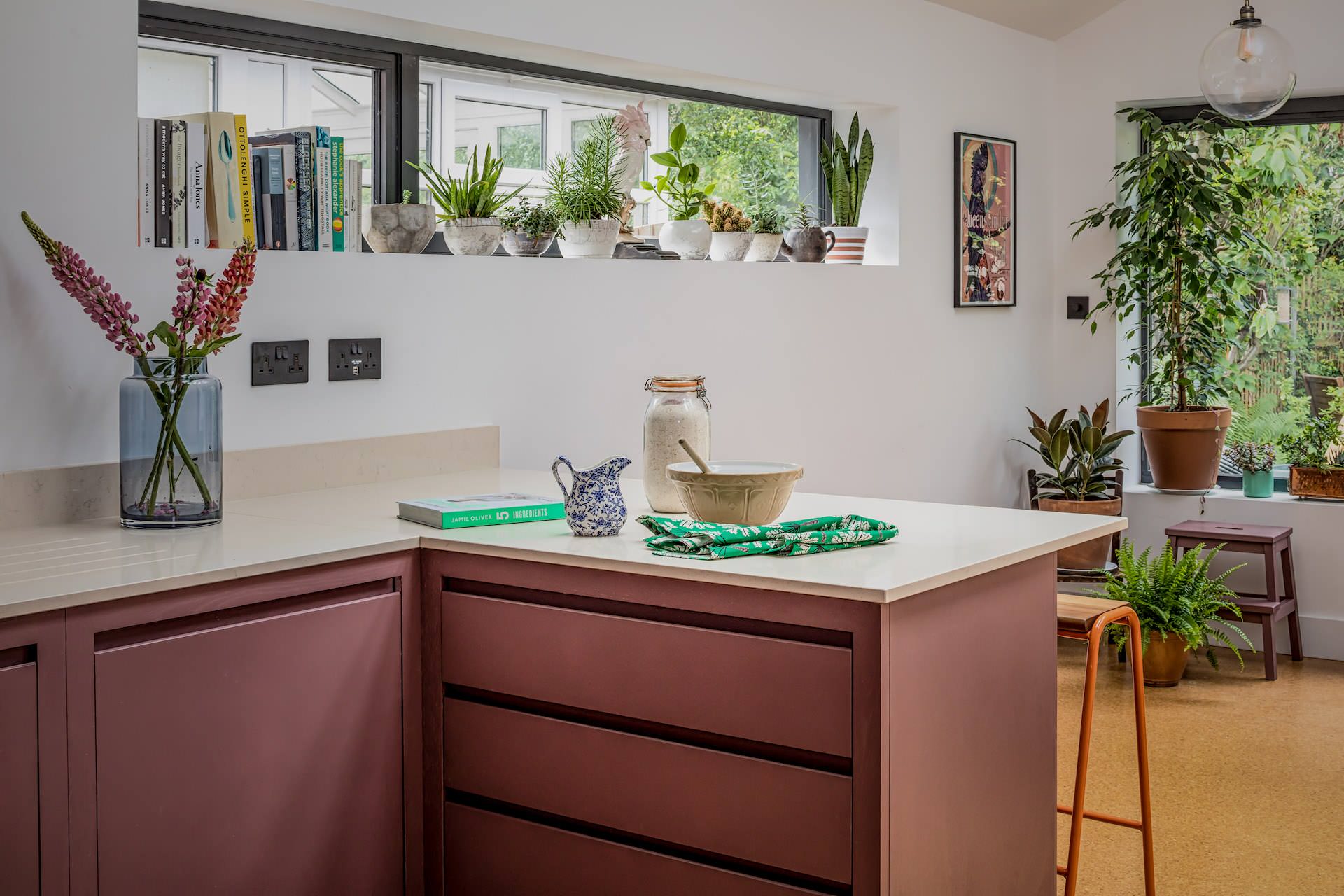 A wall that at first glance seems too awkward for cabinetry can sometimes be more useful than you might think. In this kitchen, designed by Mia Spencer of House by Mia, wall units were ditched in favour of extra storage, including some clever joinery opposite the sink.