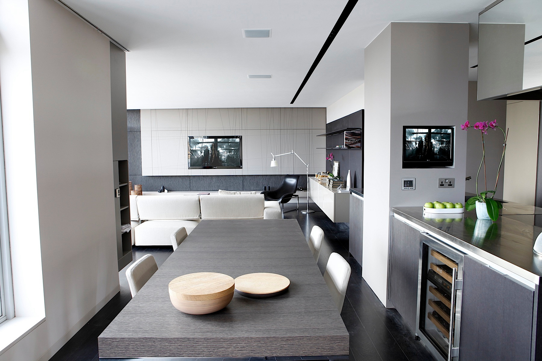 A projector can be concealed in the ceiling or in a tabletop. Then, whenever you want to watch a film, your living room or kitchen can be transformed into your own private cinema.