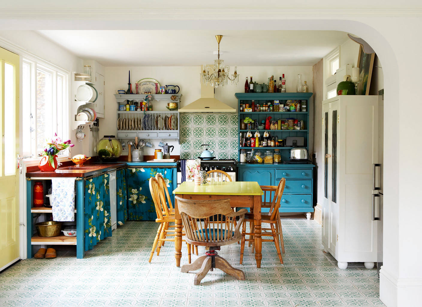 Similarly, the same idea would work with classic designs collected over the years, as seen in this enviably large eat-in kitchen.