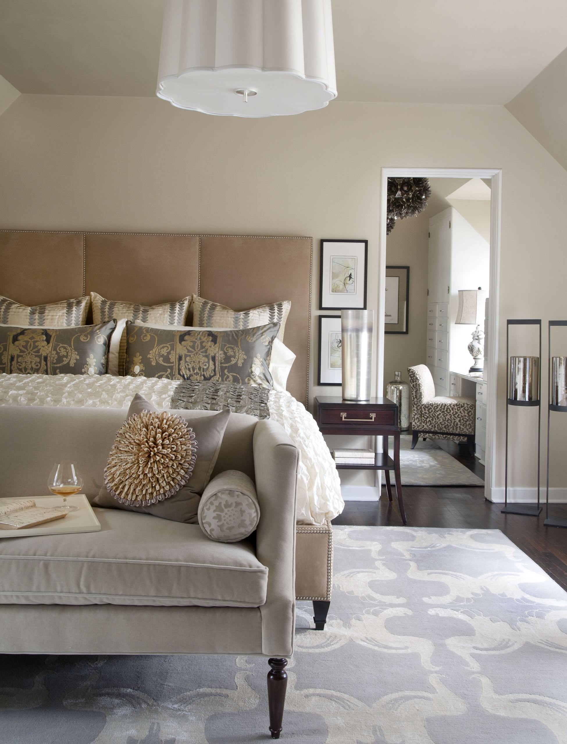 Arguably the room in which we seek the most comfort is our bedroom. If you’re a fan of Mocha Mousse, consider layering shades of it, as seen here in this softly luxurious bedroom designed by Dawn Interiors.