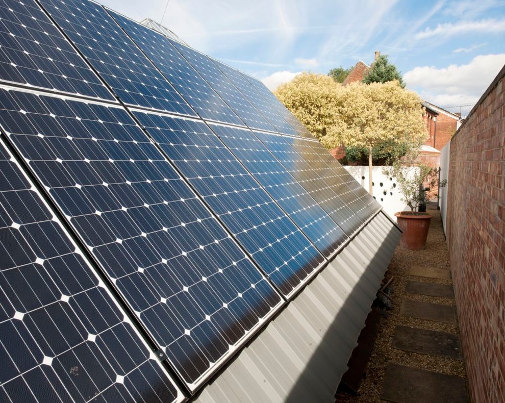 Insulating panels on one side of the roof are not visible from the main house and are a discreet way of insulating the office in winter. An electric grid, integrated into the panels, help power the studio, with some energy left over to power the house as well. ‘First and foremost, it’s a fantastic space, but it is a luxury,’ says Gary. ‘A separate office five seconds from your house is a lucky bonus.’