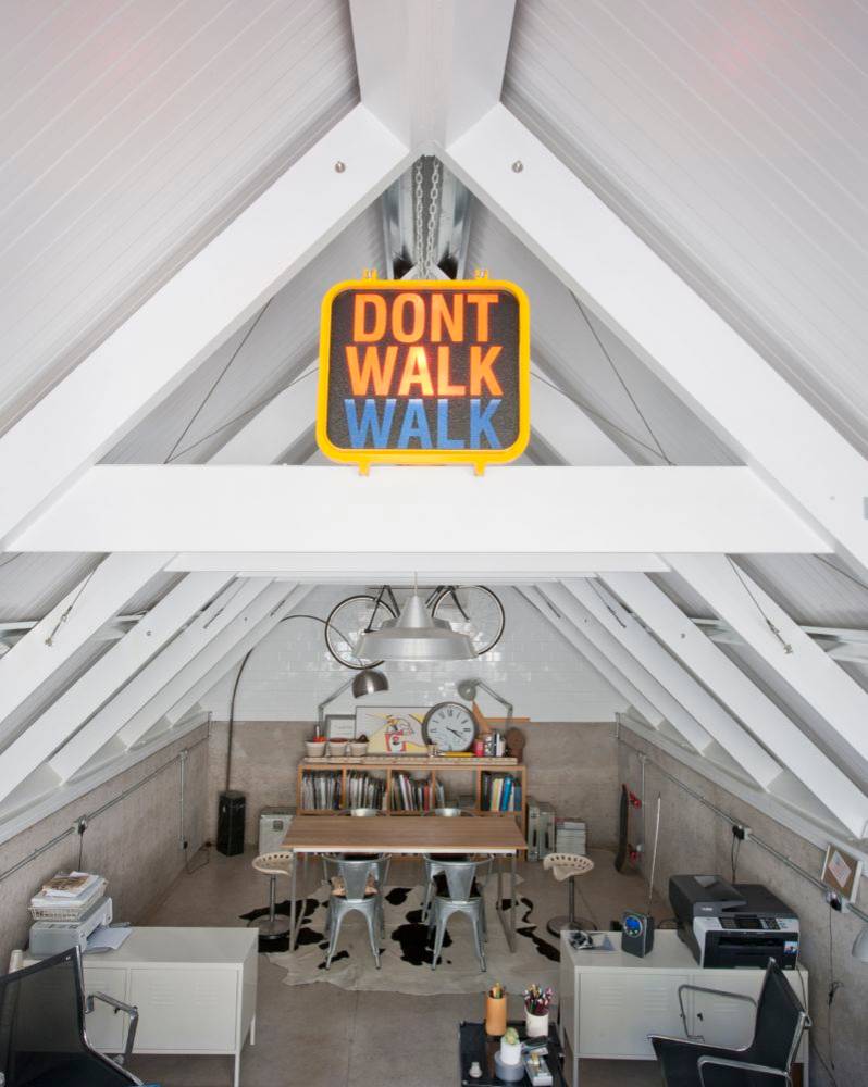 ‘Everyone thinks the bike is an art installation, but it’s actually incredibly practical and I use it all the time!’ says Gary. ‘It’s on a winch and takes 10 seconds to get down when I need it, but otherwise it’s an incredibly efficient use of space that just happens to look good, too.’ A genuine New York traffic sign is another quirky touch that the couple couldn’t resist. ‘It had our name over all it,’ admits Gary. ‘Although we didn’t steal it! They were sold off a few years’ ago, so we snapped one up. It’s quite a talking point when we have clients over for meetings.’