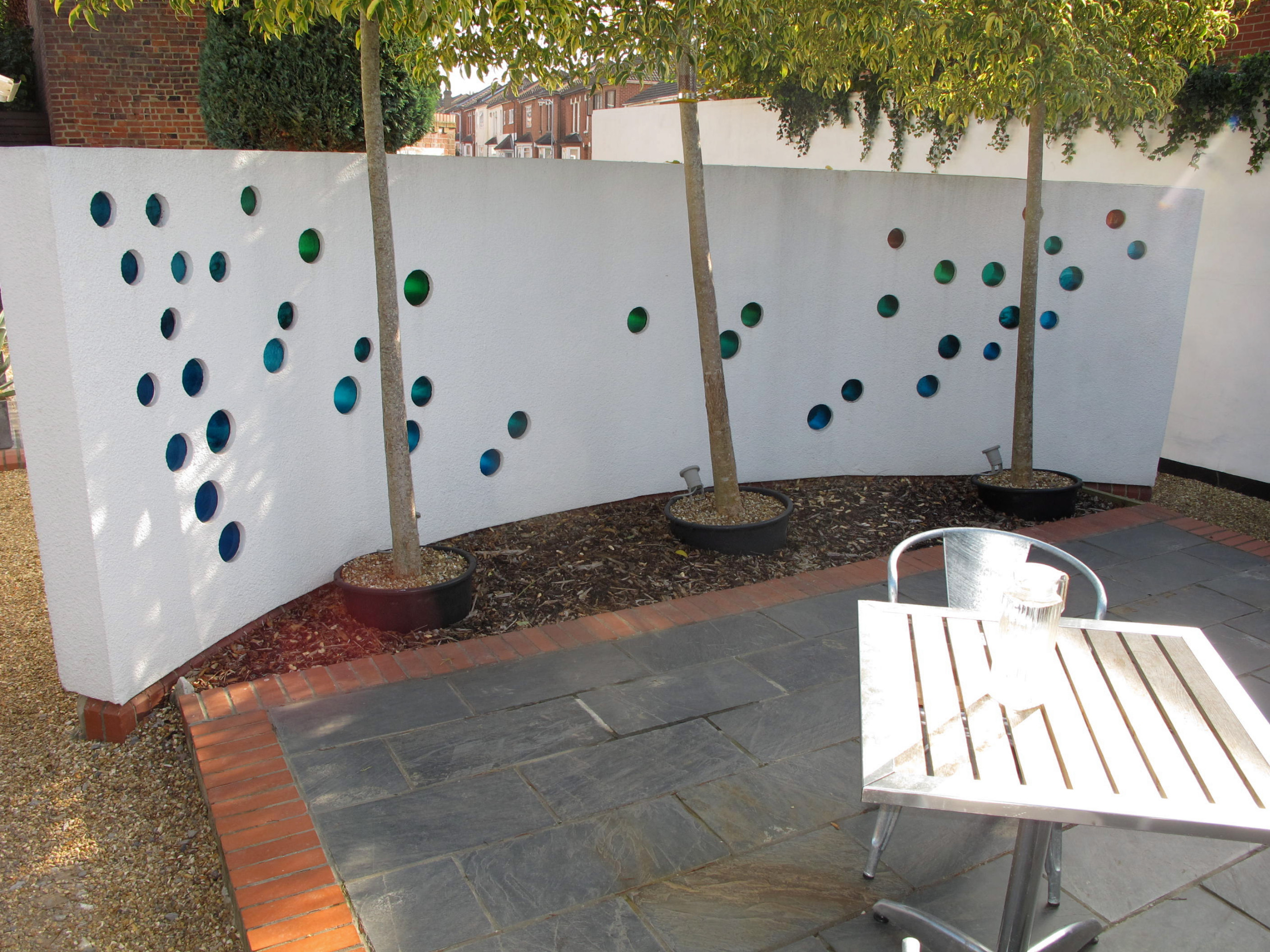 An exterior wall already existed, effectively shielding the office from the street behind. ‘We added the patio space at the front,’ explains Gary. ‘It’s wonderful having meetings out here in the summer and, considering it’s in the middle of a busy town, it’s very quiet with lots of privacy.’