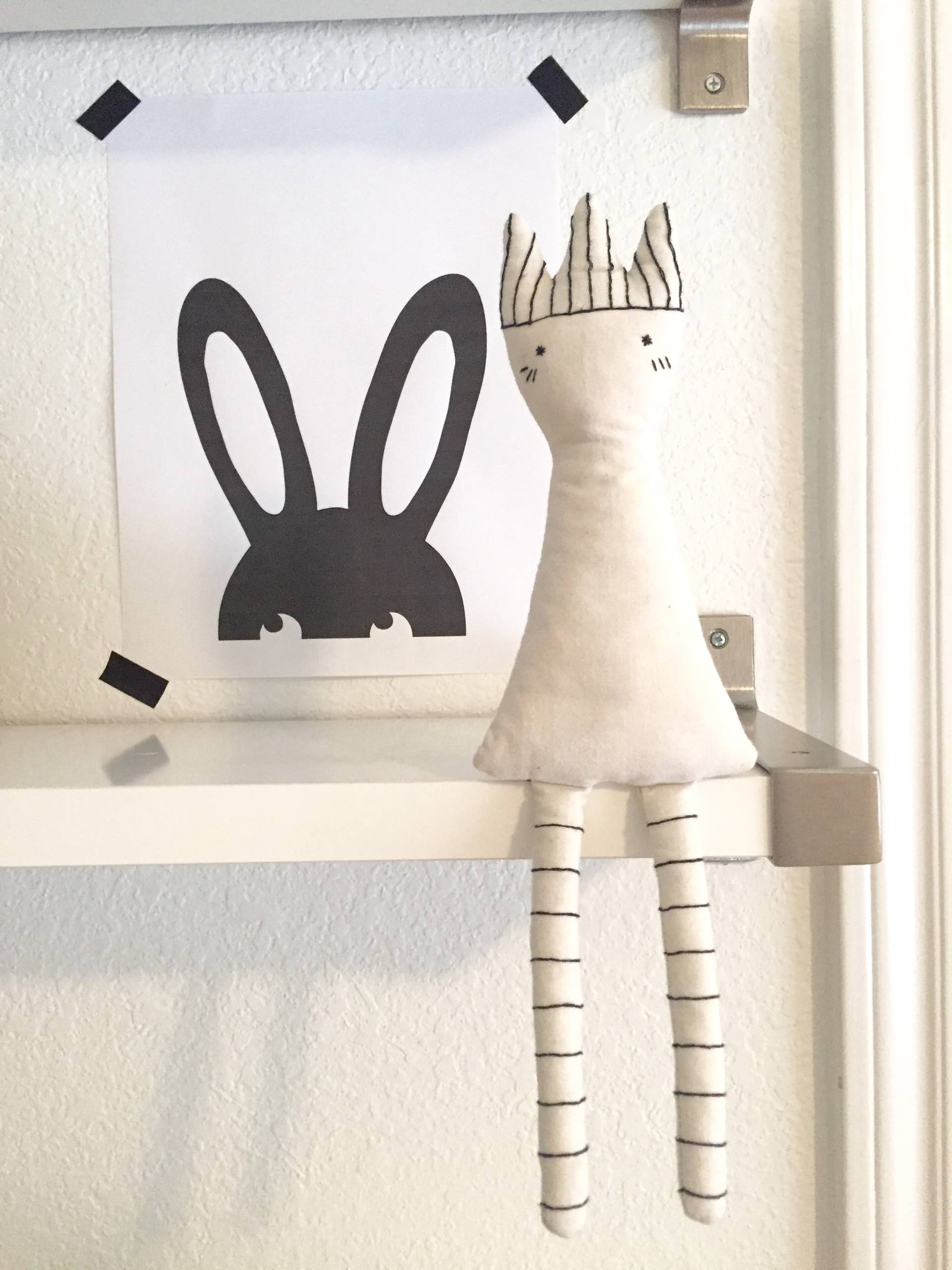 Curtis balanced homemade pieces, such as the beds, with other saves and a few splurges. One splurge was the custom bedding. The Scandinavian-inspired, gender-neutral palette is an apt choice in a room shared by a boy and a girl.
