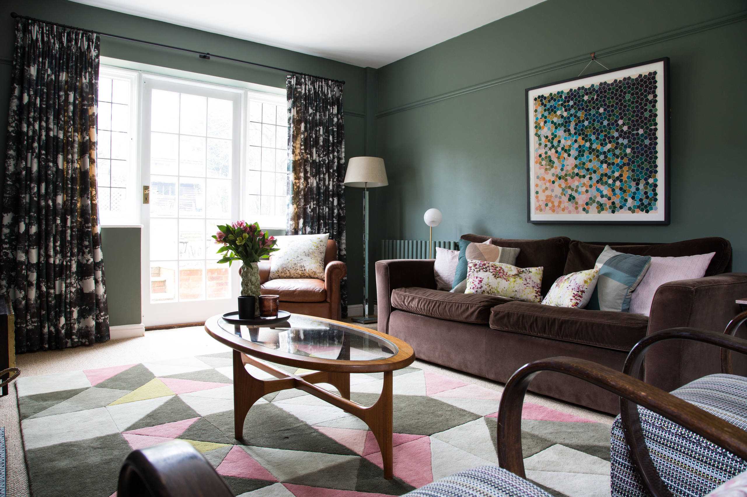 The rich, dark hues used in this room are cocooning and forest-like. “People tend to use living rooms in the evening and more during the winter, so the colours can be dramatic and heavy,” says Phoebe Oldrey of Smartstyle Interiors, who designed this scheme.
