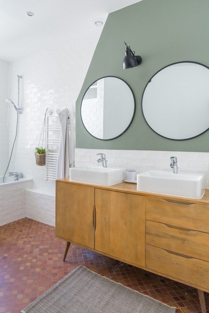 Note also how well it goes with the terracotta floor tiles and natural wood of the repurposed sideboard: green and earthy hues work excellently together.