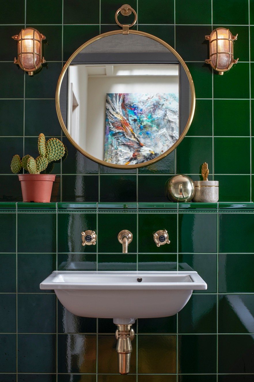 Deep bottle green tiles have strong Victorian connotations and work well with the traditional feel of this bathroom, designed by Caroline Ashenden.