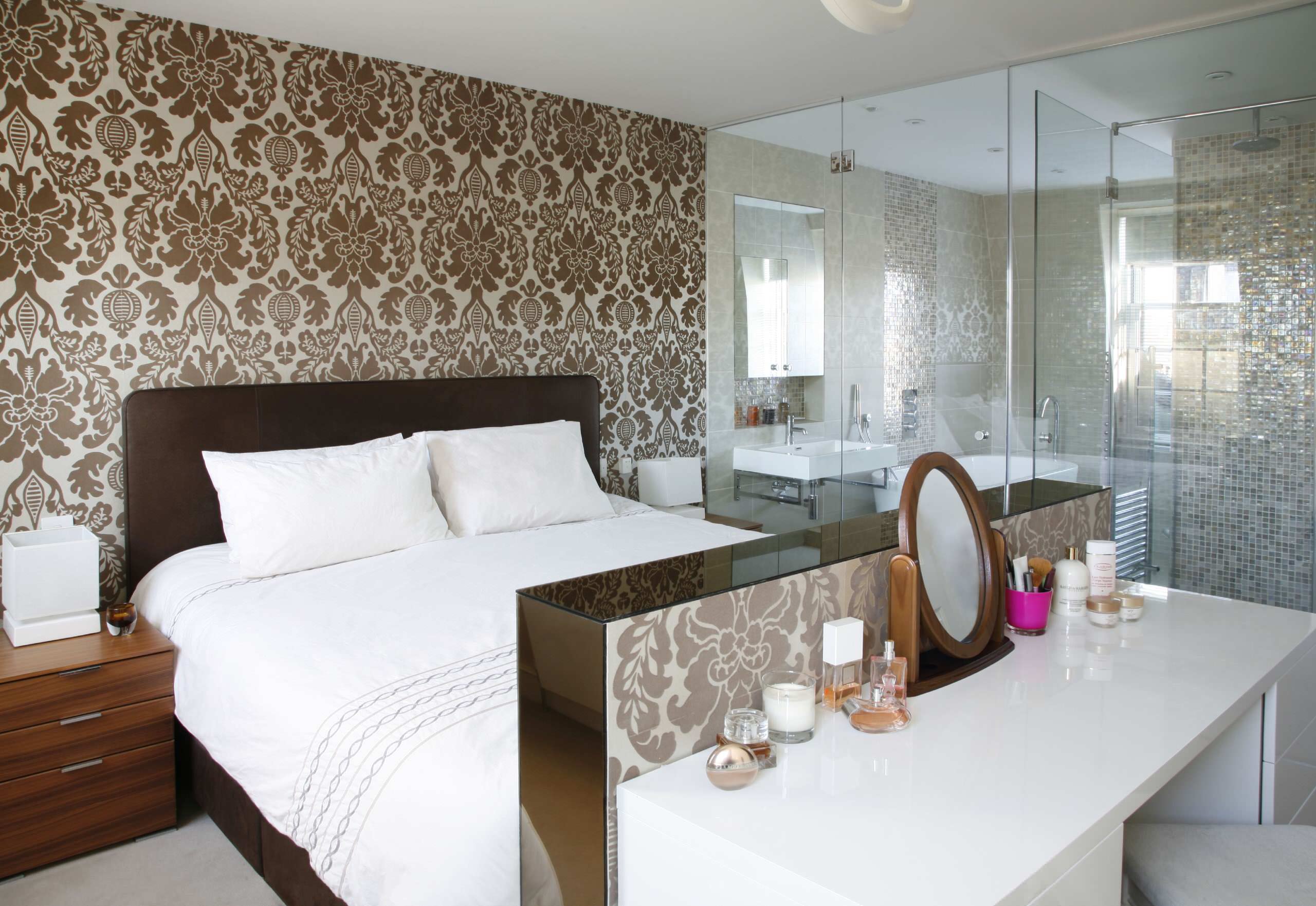 A lack of wall space to site a dressing table needn’t preclude its inclusion in a scheme, as this bedroom demonstrates.