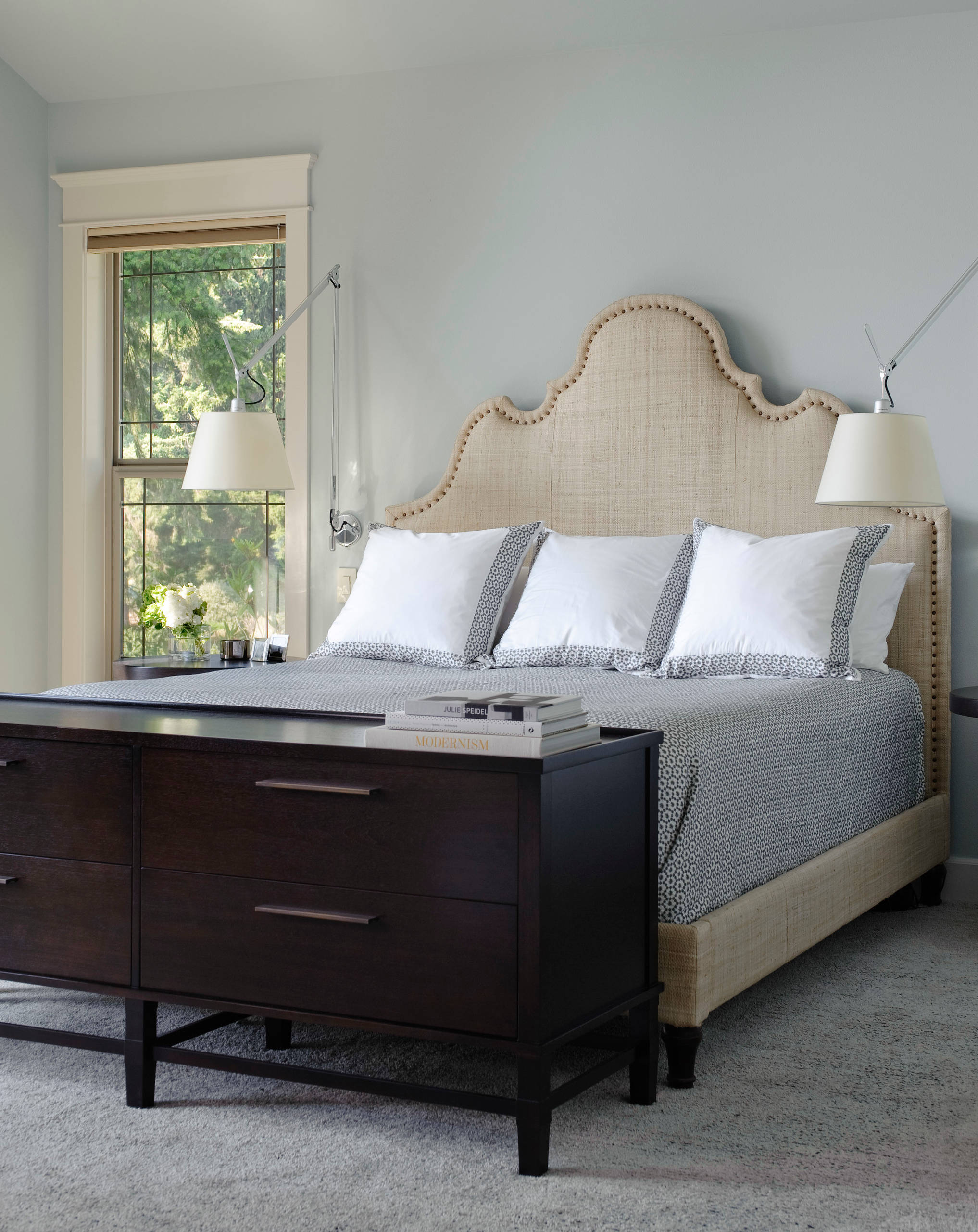 Note that, while this is a taller piece of furniture than many end-of-bed options, it’s still lower than the top of the mattress; higher, it would look unbalanced.