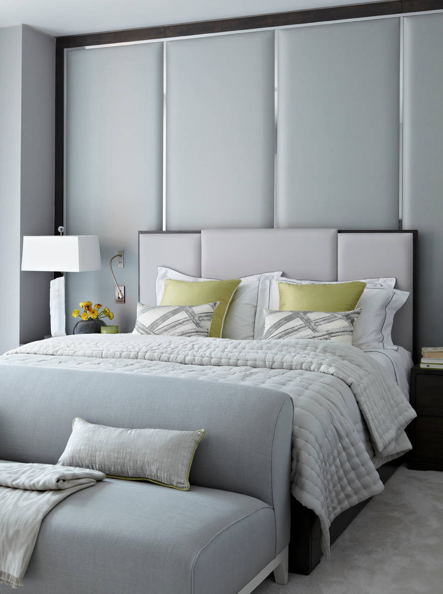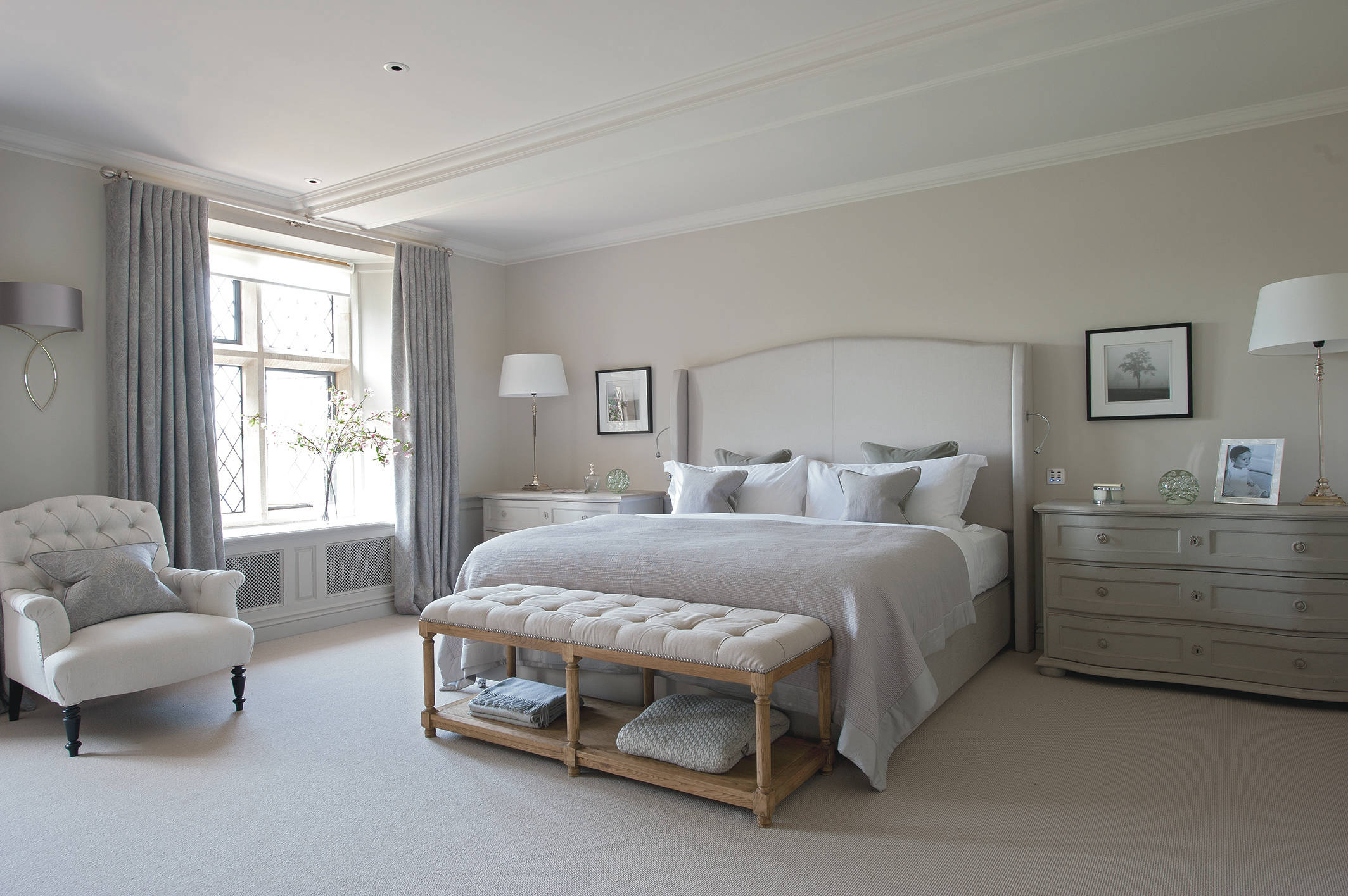 A room that’s not large enough for the hotel luxury of a separate seating area might yet follow this scheme’s example with a sofa at the end of the bed, if the room length allows. The golden rule? The sofa shouldn’t be wider than the bed.