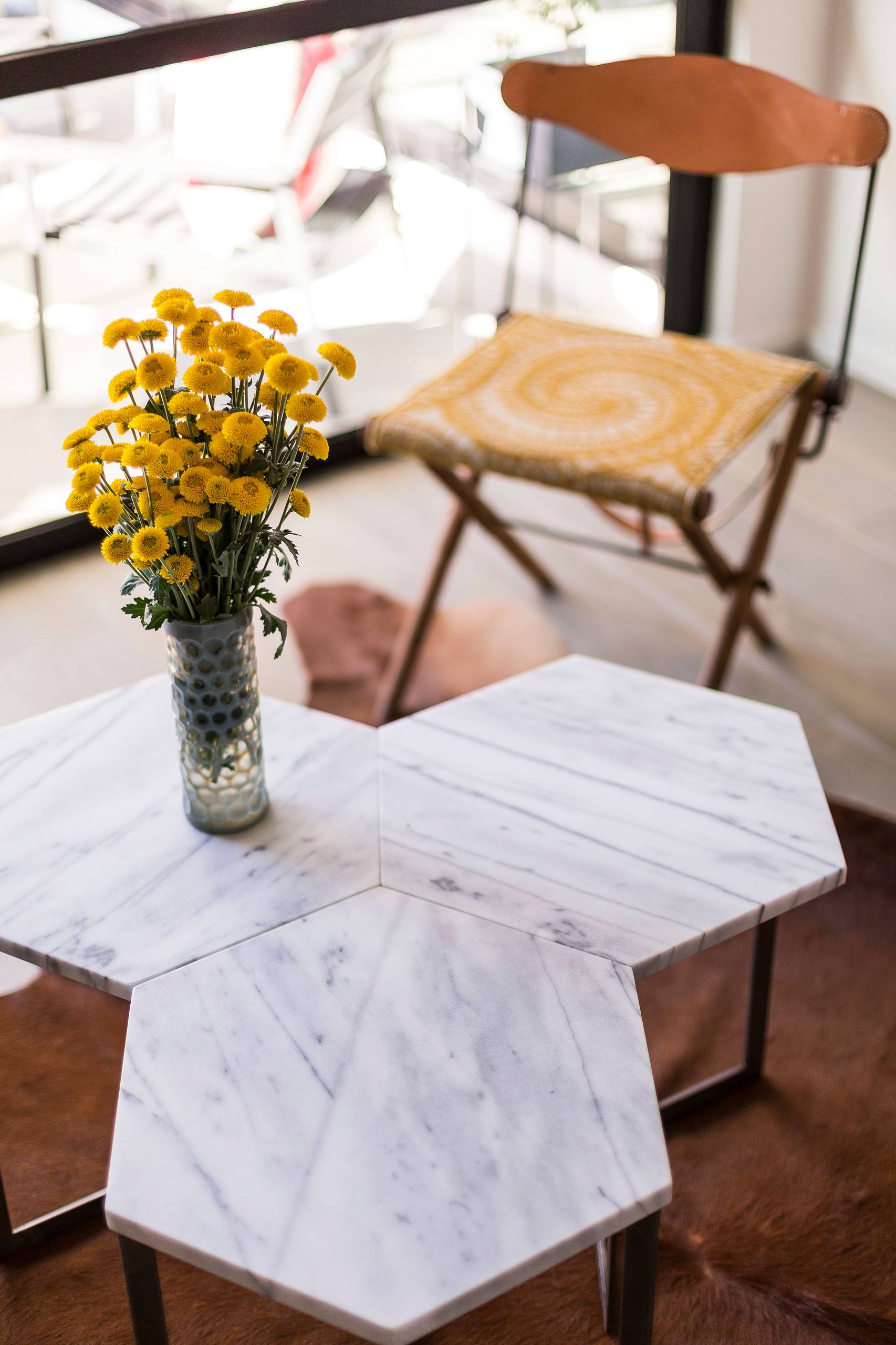 Try introducing marble on a small table, such as a console or coffee table. This trio of hexagons brings a little luxury into the room, as well as pleasing pattern in the veining.