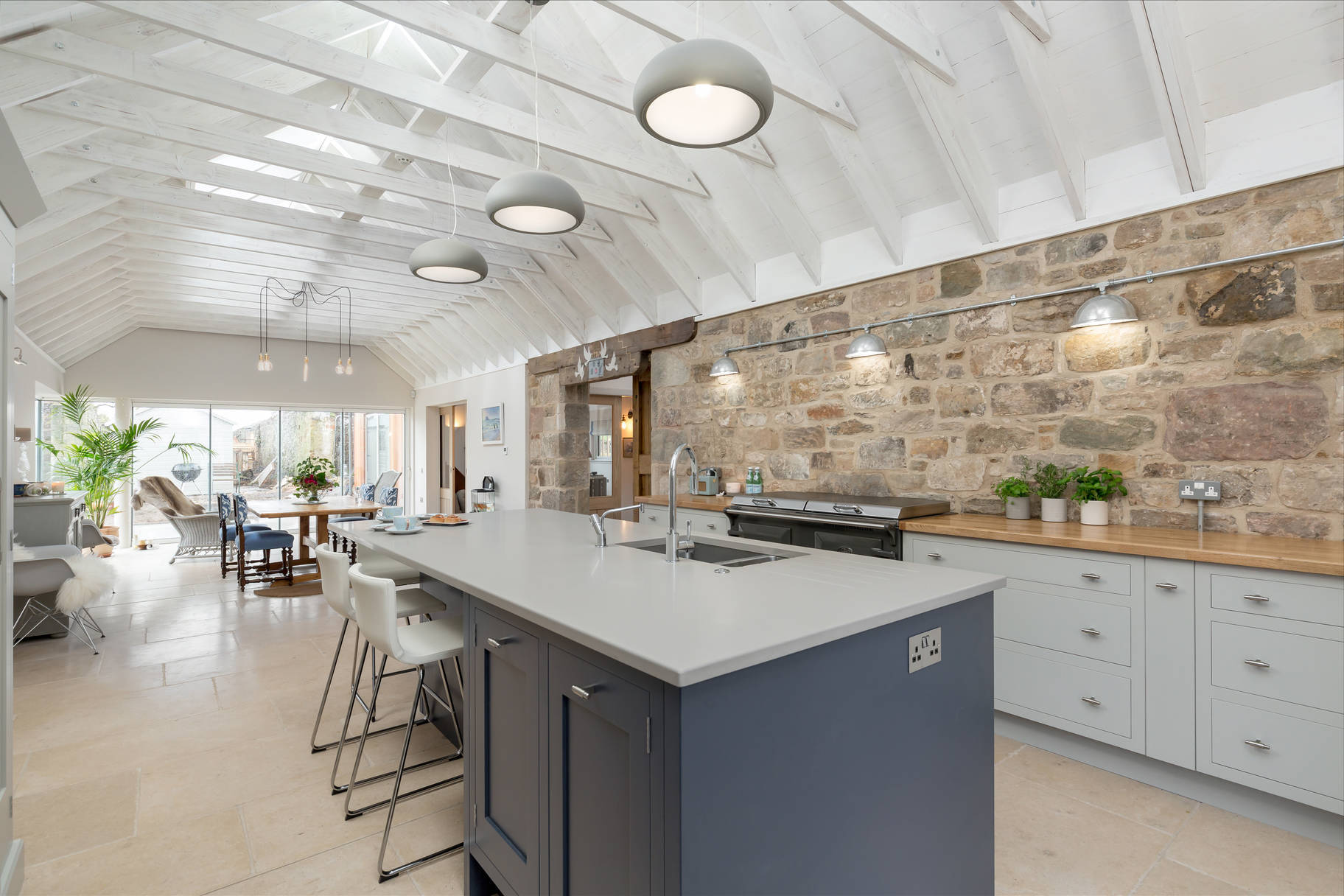 In a room with architectural features on show, it’s a good idea to leave the walls clear. The exposed stone in this kitchen looks stunning and it would have been a shame to cover it with cabinets or shelves. If your walls have some interesting elements on them, consider leaving them blank to give your room more character.