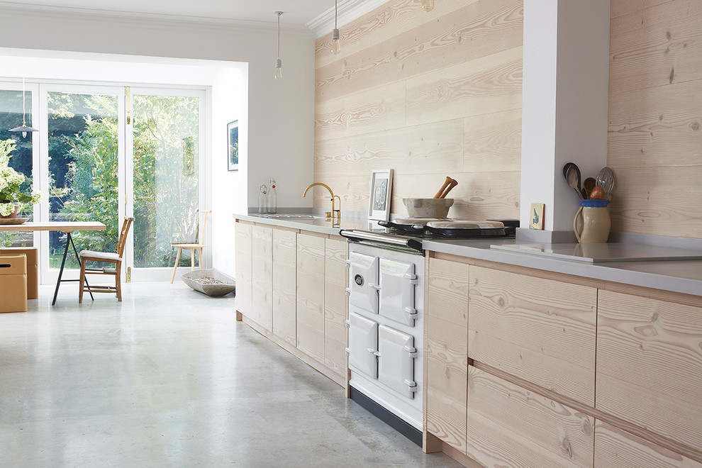 If you fancy something more interesting than a painted wall, hunt out alternative surfaces. The wood panelling here provides a wipe-clean area and adds character to the space.