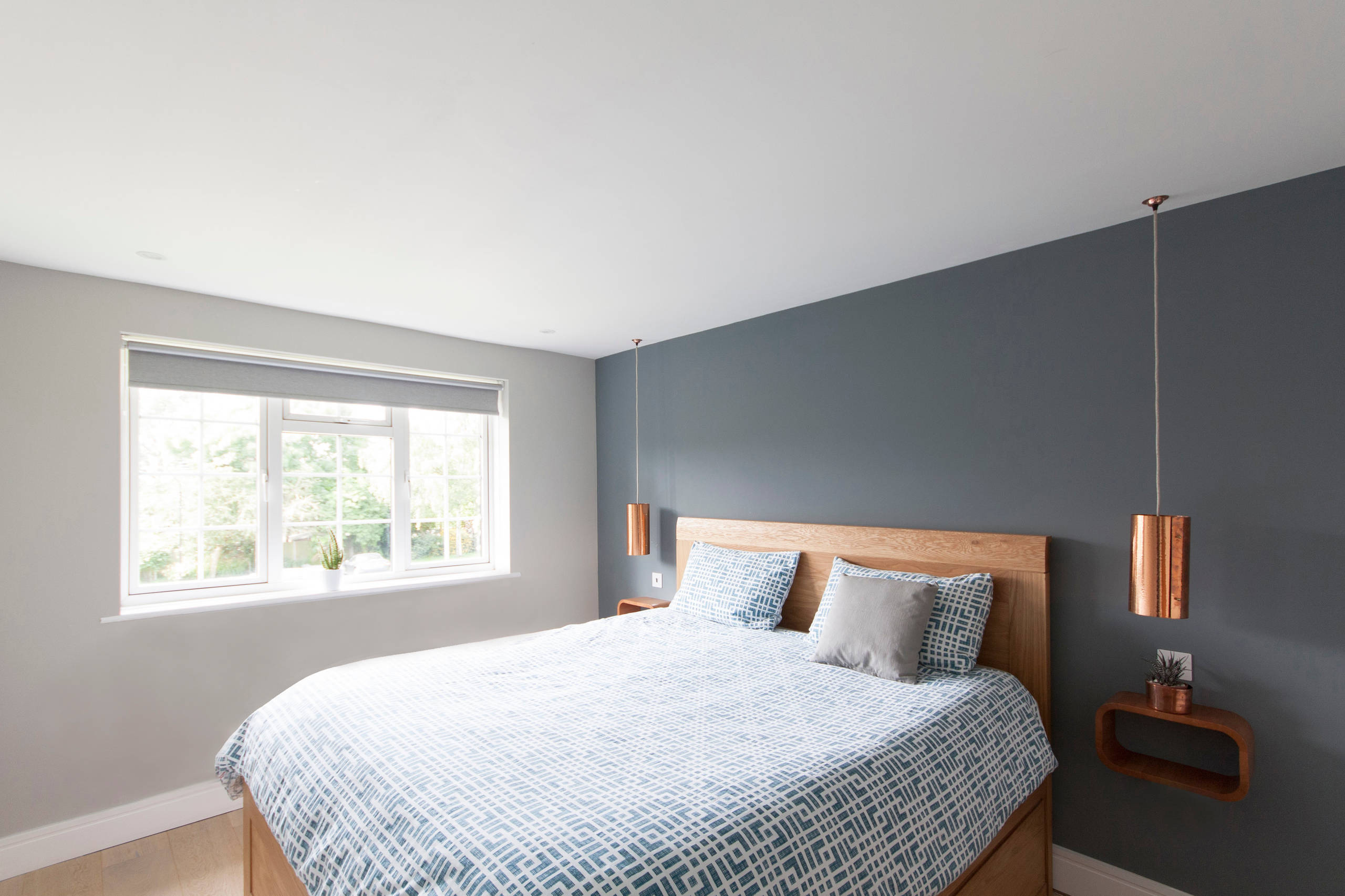 When a bedroom has a good natural light source, a mid blue such as the one here looks calm and inviting. When trying out tester pots of any colour, remember to see how the light alters how the shade appears at different times of the day before making a final selection.