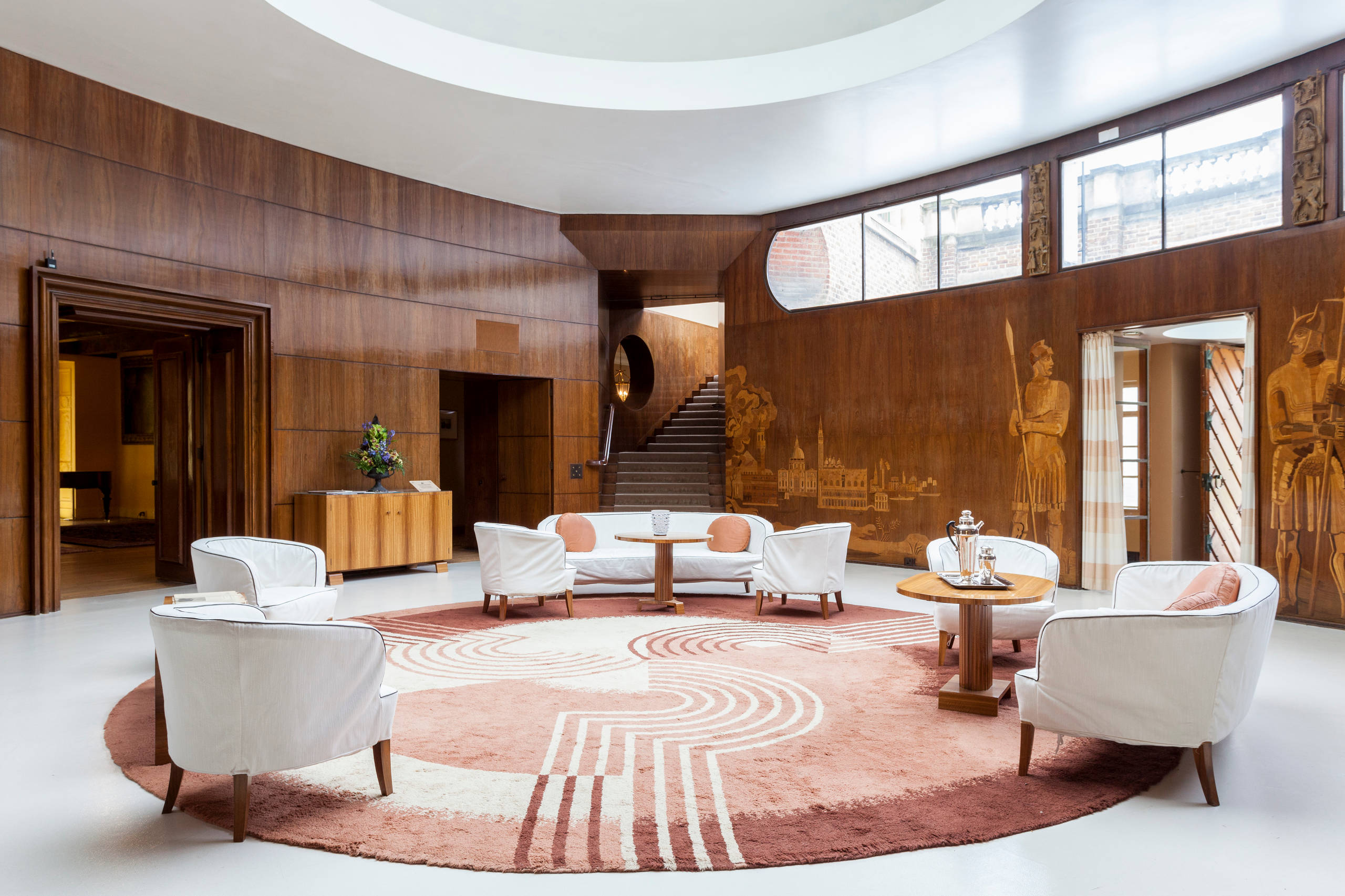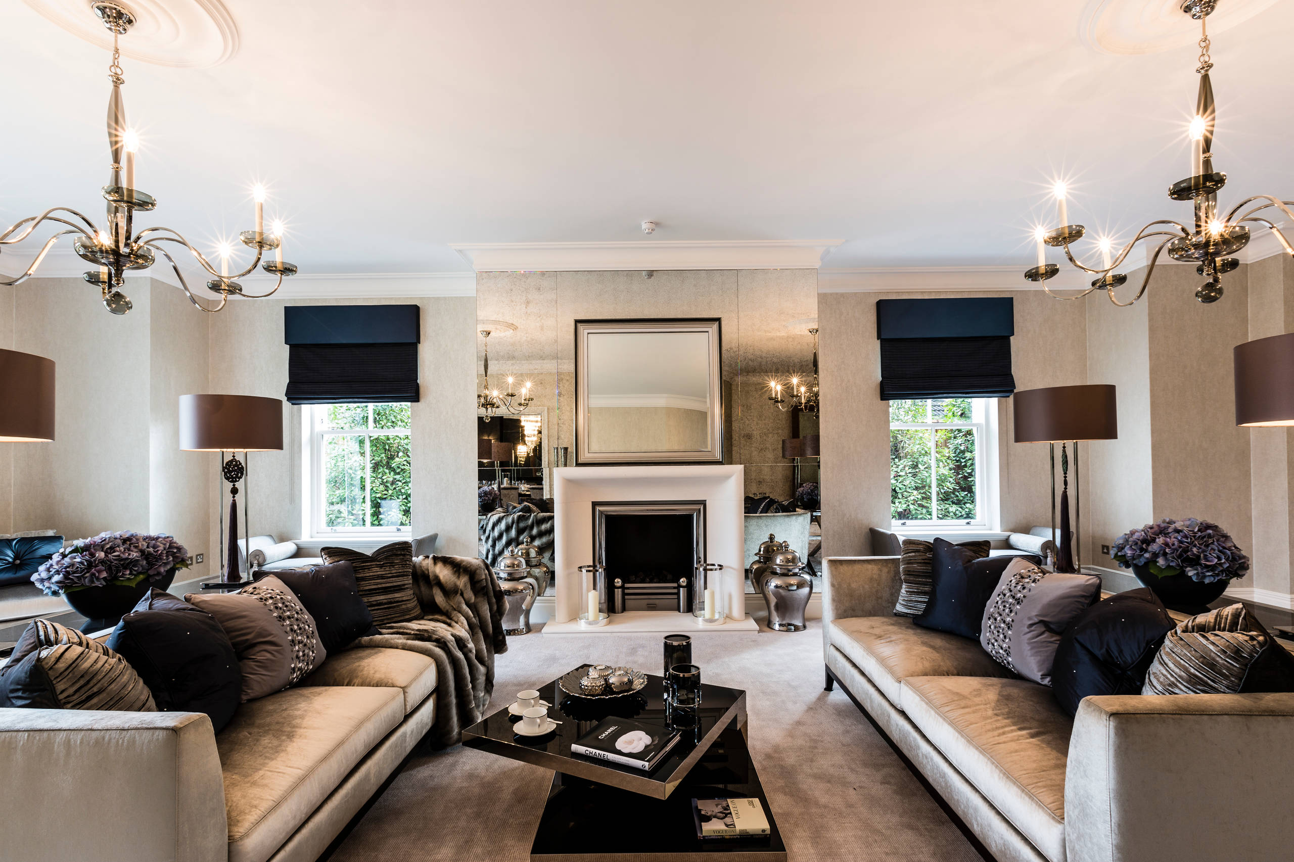 This refers to both the exterior and interior of a building, as architects are also trained to be interior designers. For instance, the most striking feature of this contemporary room is the antique mirror covering the chimney breast, which is an unusual feature, but which fits in very well.