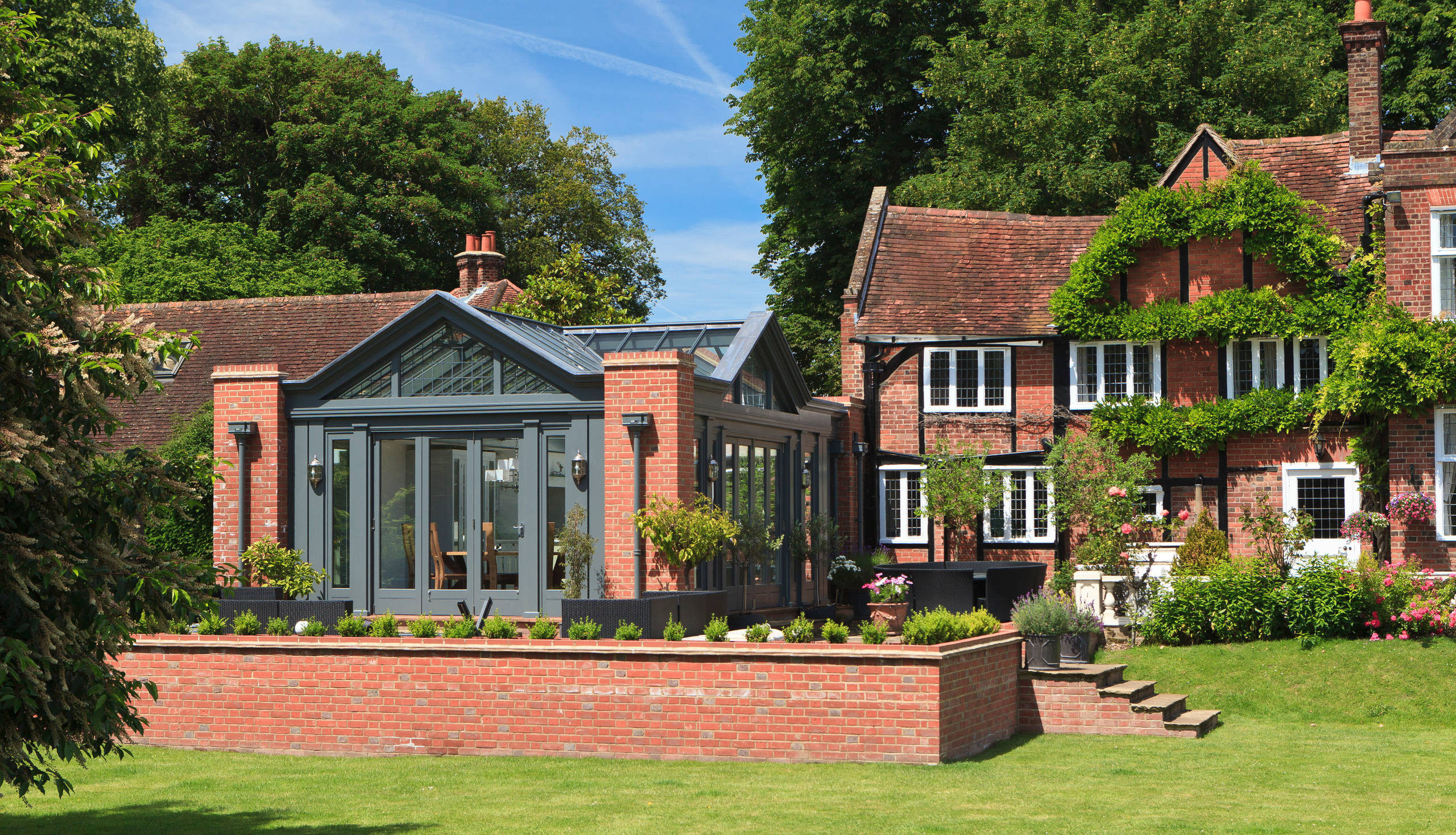 Looking at this image, you can see a different-style extension set within a traditional garden. The extension uses similar materials to those of the house, and its size, scale and appearance are carefully balanced to enhance the setting. The design would have pleased the owners, but it would also have helped with receiving the necessary permissions.