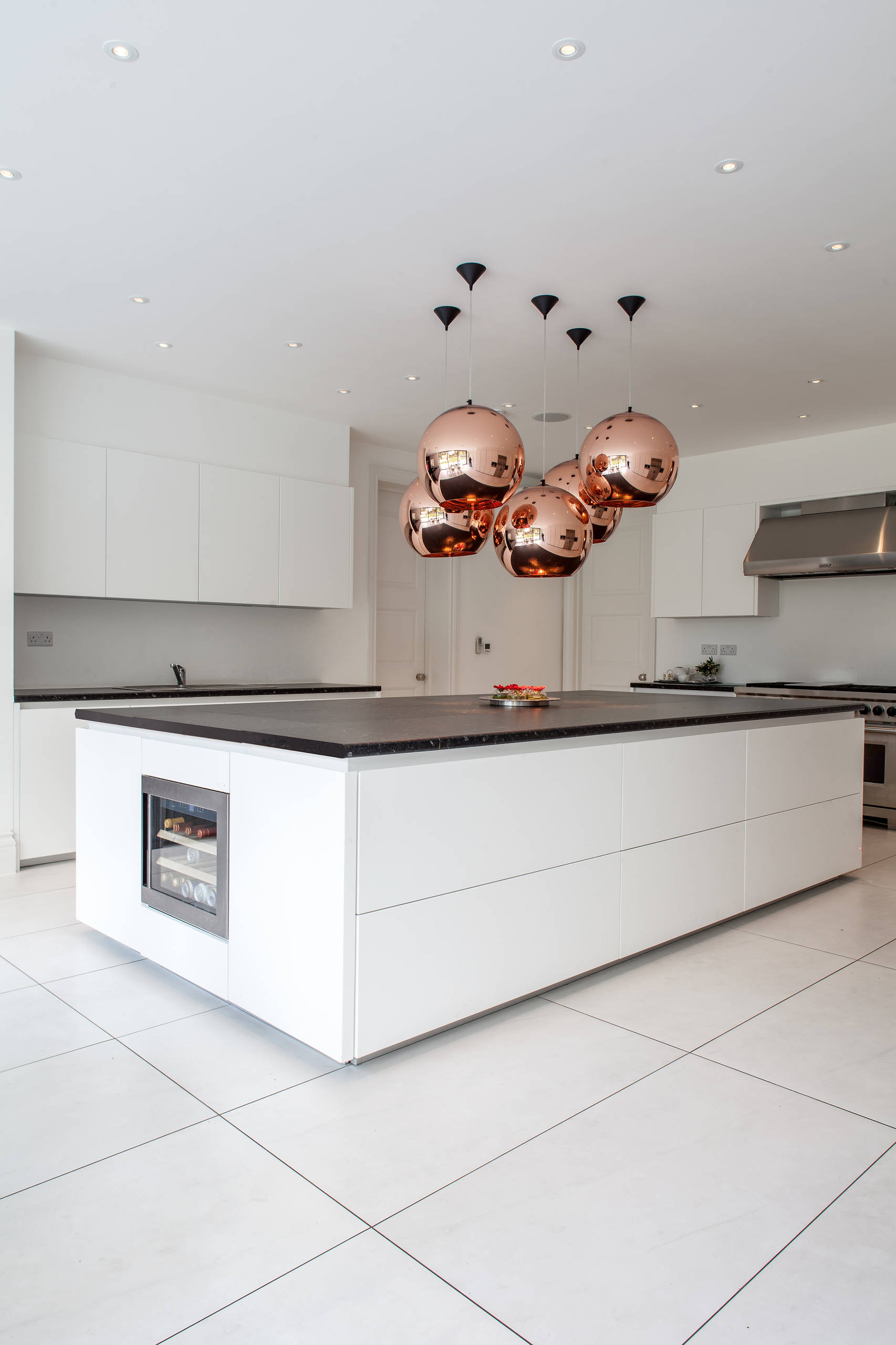 If you really want to make a statement, consider having a mirrored kitchen ceiling. This isn’t a look that will appeal to everyone, but a softer alternative can be achieved using stylish mirrored light fixtures and fittings. Oversized lights, such as these classic copper pendants, look fantastic above an island or dining table, grabbing attention and creating bright and interesting reflections. Similarly, fittings with mirrored details or chandelier crystals will also reflect the light and make soft patterns across your kitchen walls, creating instant ambience in the evenings.