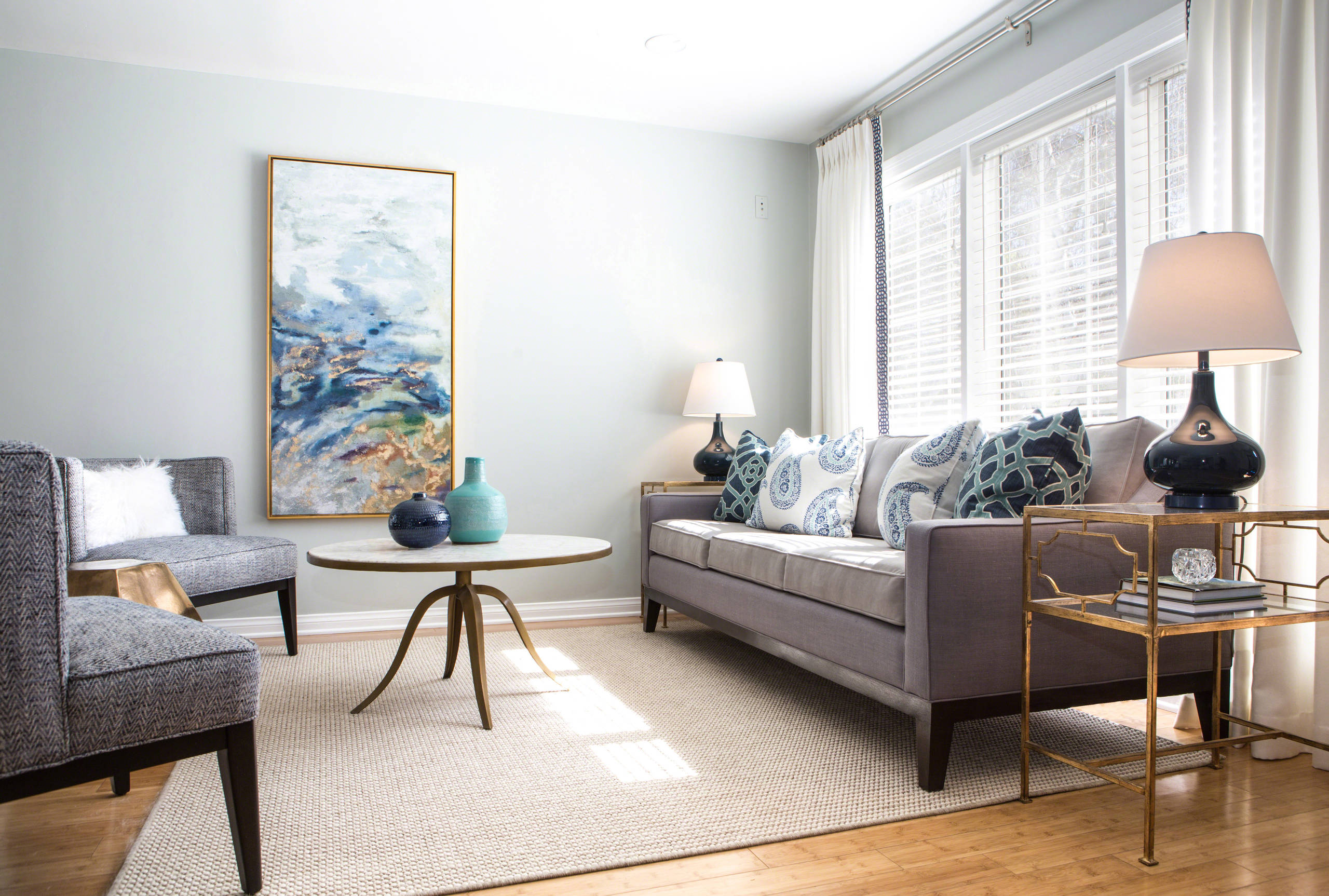 “Navy and white is an easy palette to work with,” she adds, “and offers lots of choice in fabrics, rugs, cushions and throws.”