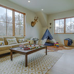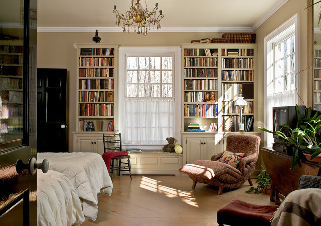 Design ideas for a farmhouse gender neutral teen’s room in New York with beige walls and light hardwood flooring. — Houzz