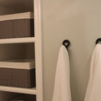 Select a vanity unit with one shelfSink unit design has got smarter. Even a pedestal style with one shelf can hold towels or a basket for toilet paper. I personally love the way fresh, clean towels look when folded neatly in a bathroom.See how to banish bathing clutter