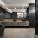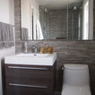 Expand the mirrorIn the tightest spaces, having a mirror stretch across the wall instead of just the vanity unit can enable two people to use it at once. In less-than-ideal space conditions, every centimetre helps.