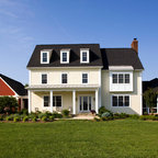 Inspiration for an expansive and white farmhouse two floor exterior in New York with wood cladding and a pitched roof. — Houzz