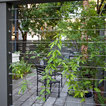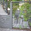 Bowen Residence Transitional Landscape, Charleston The patio was separated from the vehicular area by a living fence to provide some privacy while allowing for air and light to penetrate. All the plants are native and provide year round interest and a verdant feel to the space.
