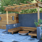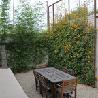 The patio was separated from the vehicular area by a living fence to provide some privacy while allowing for air and light to penetrate. All the plants are native and provide year round interest and a verdant feel to the space.