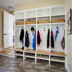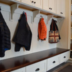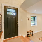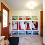 I like the entryway- colors, bench, space for shoes, hooks, mudroom style