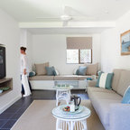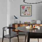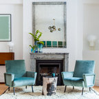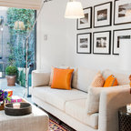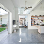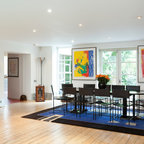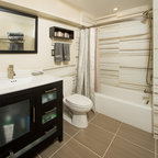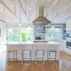 Looking the other direction, this view shows the white paneled door on the left that leads to the new water closet and the opening at the far end to the expanded closet. “We sacrificed a window to get a more functional closet space,” . Behind the white wall is the toilet..hidden