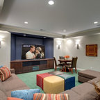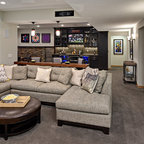 Design ideas for a medium sized classic walk-out basement in Minneapolis with grey walls and carpet. — Houzz