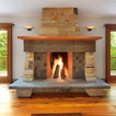 Design ideas for a medium sized rustic open plan living room in Burlington with a reading nook, beige walls, medium hardwood flooring, a standard fireplace, a stone fireplace surround and a concealed tv. — Houzz