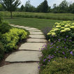 Neat pathway from sport court to fire pit sitting area near master