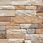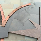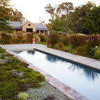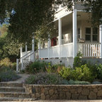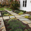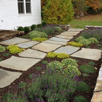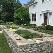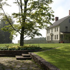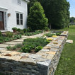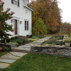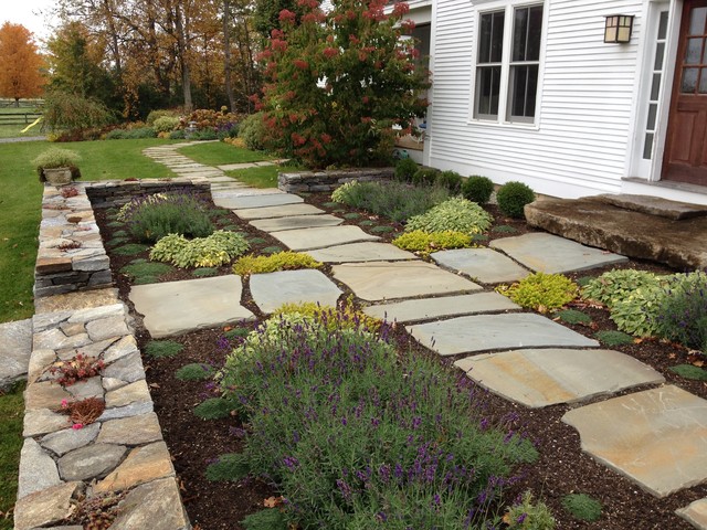 Photo of a large farmhouse back formal full sun garden in Burlington with a retaining wall and natural stone paving. — Houzz