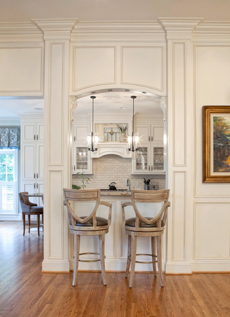 Design ideas for a classic kitchen in Charlotte with white cabinets and white splashback. — Houzz