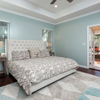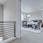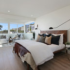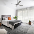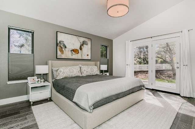 Medium sized contemporary master bedroom in Boise with grey walls, dark hardwood flooring and grey floors. — Houzz
