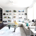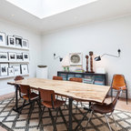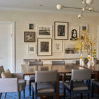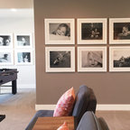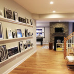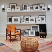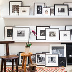 Prop on a ledgeA picture ledge allows you to rearrange a display or photos or artworks whenever the fancy takes you. Grouping together similar pictures – like this collection of black-framed monochrome photos – works particularly well when displaying them on a ledge. These homeowners have even made use of the floor, with prints casually propped up against the wall.