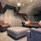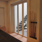 stack photos on floating shelves, maybe even Kaia's art work on a wall in the kids' zone. ?