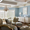 Great contrast between blue and gold. I wonder about blue and a light tan inside or other neutral....gold is not my favorite color. The tufted sofa is nice.