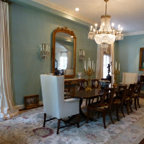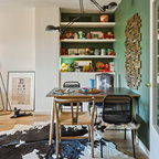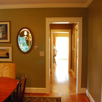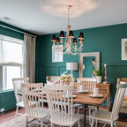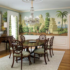 This is an example of a classic dining room in Boston with green walls and medium hardwood flooring. — Houzz