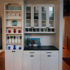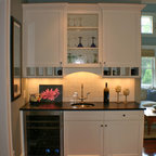 Wet bar - needs fridge. Make coffee station too? No upper if this sits between family room and kitchen if we open the wall.