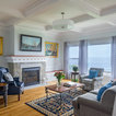 Cummings Architects transformed this beautiful oceanfront property on Eastern Point. A bland home with flat facade from the eighties was torn down to the studs to build this elegant shingle-style home with swooping gables and intricate window details. The main living spaces and bedrooms all have sprawling ocean views. Custom trim work and paneling adorns every room of the house, so that every little detail adds up to to create a timeless and elegant home.