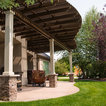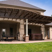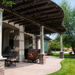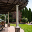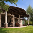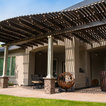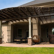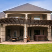 This MOCKWOOD pergola was custom shaped to match the curves of the existing concrete pad. Upgraded with custom columns and end cuts it is a unique project that perfectly complements the home.