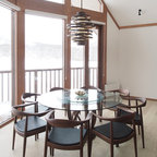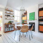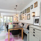 Go up and aroundMake use of vertical space by building up and around a long bench. It’s a clever way to use potentially dead space up high and down the sides of the walls. In general, tucking shelves just below the ceiling can be a clever way to fit in more storage. If your dining room layout is unlikely to change in the future, this idea could be worth considering.