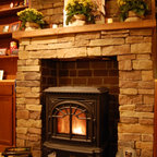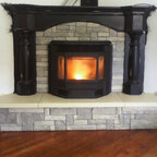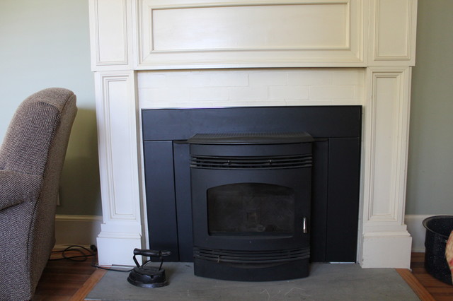 Fireplace surround with pellet stove insert